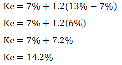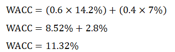 New WACC: 0.6×17.8)+(0.4×7=13.48%