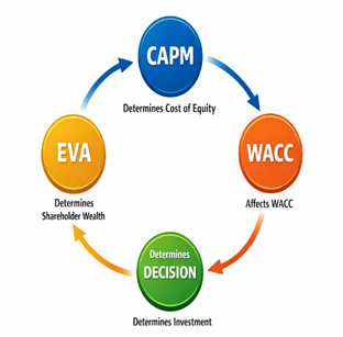 | CAPM Cost of Equity WACC Investment Decision EVA | Determines Cost of Equity Affects WACC Determines Investment Decision Determines EVA 9Determines Shareholder Wealth |